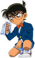 Conan Edogawa (Edogawa Konan) is the alias used by Shinichi Kudo in his shrunken form. Shinichi took the appearance of his six year old self after being exposed to a prototype poison called APTX 4869 which he had been forced to swallow by two men in black later revealed to be members of the Black Organization. The poison deaged Shinichi's entire body except for his nervous system and therefore he still has the personality, memories, and incredible deductive ability of his teenage self. Conan's goal is to hunt down the Black Organization in the hope of finding an antidote to the APTX 4869. To do so he plans to make the washout detective Kogoro Mouri famous in hopes of attracting a case related to the Black Organization.Conan is often treated as a separate character from Shinichi by fans, and often viewed as the main character of the series while Shinichi is viewed as a recurring character. He has become a popular figure in Japan and even appeared at numerous occasions in different anime series (i.e. mainly cameo appearances) as well as other medias.